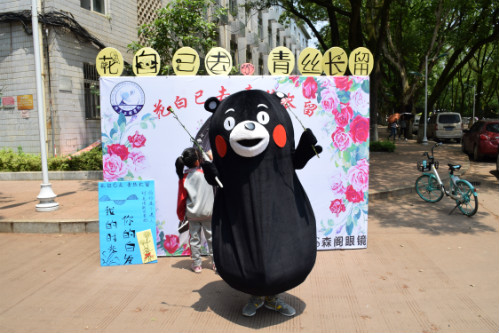 于南区一食堂门口举办“我的时光,你的白发”母亲节系列活动,近百名花椒学子参与其中。
