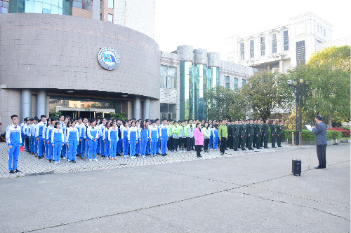 在教8栋前举行升旗仪式,信息华都娱乐场