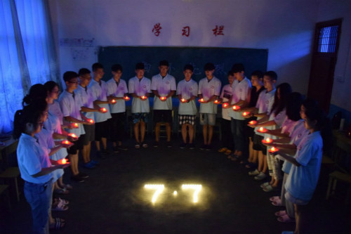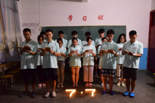 三下乡团队手举蜡烛为烈士哀悼