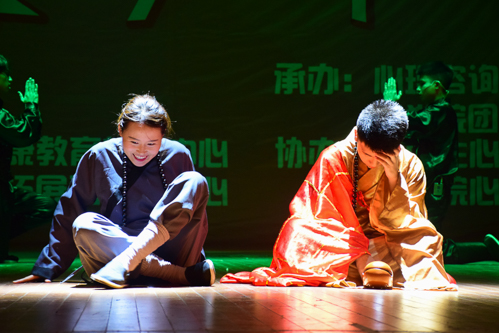 的心理剧《空山》拉开帷幕。该剧讲述的是深山中一位小和尚为摆脱师父控制下的人生,下山寻找自己新生活的故事。剧情跌宕起伏,小和尚在下山途中遇到了一系列令他苦不堪言的事情:先是弄丢了盘缠,后又阴差阳错进入牢房,而这一切都在老和尚的算计之中。演员精湛的演技和剧本深奥的主题赢得台下领导和观众的点赞。