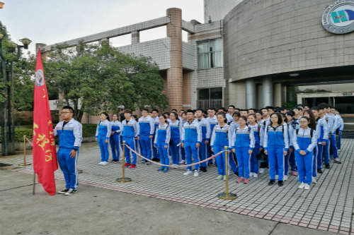 于教8栋前举行主题为如何成为一名优秀的共青团员的升旗仪式。16、17级信息工程专业及18级电子信息类4、5班的全体同学参与仪式。