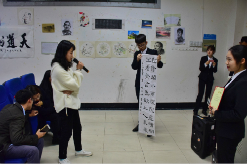 五院联合举办的第十一届“艺苑杯”颁奖晚会于北区31栋118室成功举办。险峰书画协会会长刘苏雯、软笔部副部长黄祯晨、硬笔部副部长周文涛以及国画部副部长徐雨洁作为嘉宾出席本次晚会。