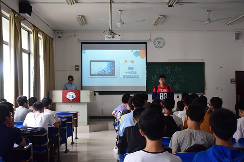 于逸夫楼303举办计算机学业分享座谈会。大四成绩优异的学长分享学业知识与学习方法,计算机专业全体同学参加了此次座谈会。