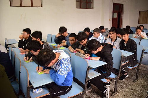 参观校史馆结束后,于教6栋215举行“我的大学,我的梦”主题班会,分为校史知识抢答、感悟发言、书签梦想三个环节。“华都娱乐场