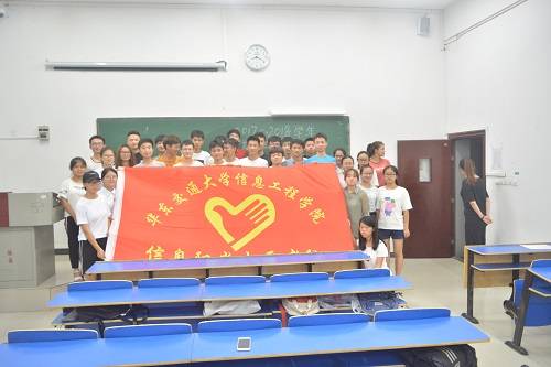学工办主任兼团委书记陈文锦、学工办副主任兼团委副书记杨青、辅导员艾国金及第三届青年志愿者协会会长许汪楠。