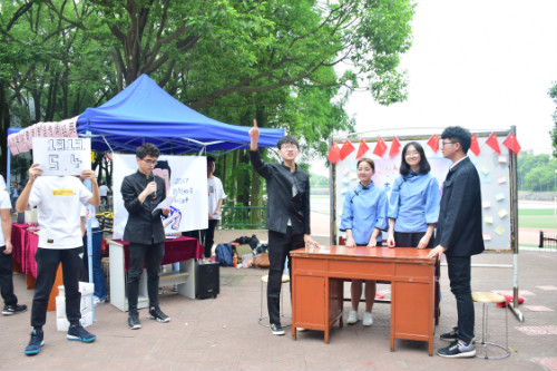 在一食堂附近上演以“青声青语,重现历史”为主题的艺术秀。