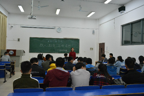在主持人简短的开场后,陈小兰上台就我们身边的权益问题发表讲话。陈小兰说道:“目前大学生普遍维权意识淡薄,所以我将为大家介绍正确的维权的方式方法,提升我们的维权意识。”她表示,在食堂发现饭菜中异物、在商店买到过期产品等问题时应该及时拍照留证,并第一时间向院权益部和校权益部反映,权益部的同学会在第一时间赶到现场帮助维权。宿舍内公共设施出现持久不能解决的问题时,可以通知校权益部协助维权……