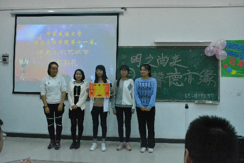 举办了主题为“明之尚美,馨德亦缘”的寝室文化艺术节活动。11月9日,寝室文化艺术节的颁奖晚会于逸夫楼108成功举行,学工办副主任兼团委副书记杨青、学生会副主席张楷毅出席晚会。