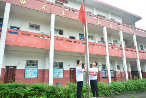 “青春正当时,共筑中国梦”教育关爱帮扶团全体成员于南昌市新建区江变小学操场举行升国旗仪式。