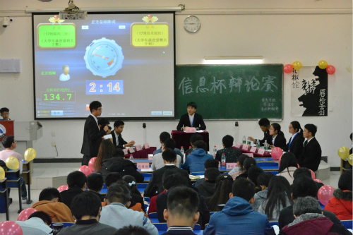 信息一班正方代表与信息二班反方代表针锋相对,就“学者明星化是否是学术传播的歧途”辩题进行精彩辩论,双方引据论典,旁征博引,赢得台下观众阵阵掌声。“学术明星化使学者沾染上世俗之气,破坏了学者本应持有的淡泊名利的心态,阻碍了学术发展。”信息一班姜鸿昌在观众互动环节,踊跃发言,提出自己的真知灼见。