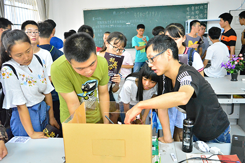此次游园途经养心湖、图书馆、国防生大楼、逸夫楼、校园超市、各大食堂及实验室等在校学生的必经之路。安静舒适的图书馆、风景靓丽的养心湖、宽敞明亮的智能教室、偌大的田径场,都让新生们对以后的大学生活充满了期待。酷炫的智能小车、精奇巧妙的塔基模型……实验室炫目多彩的科技作品也吸引了同学们的眼球。“这是基于铁路通信机房的无人值守监测系统,可以实现对机房温湿度、烟雾浓度的实时检测,从而提高维修的准确率,确保机房正常运行。”通信创新实验室成员游慧民为新生详细地讲解着实验室作品,同学们认真地倾听着,并不时发出赞叹的声音。