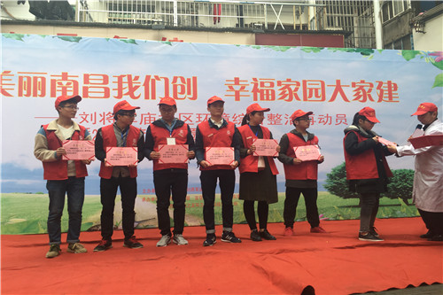 青年志愿者协会来到东湖区百花洲街道刘将军庙社区,参加“美丽南昌我们创,幸福家园大家建”主题环境综合整治再动员暨2016年度优秀志愿者表彰大会。