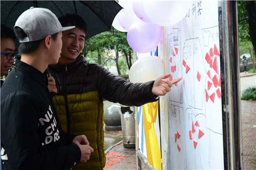 活动过程中,不仅仅是双十一的网购售后问题,针对“饭卡丢失”、“食堂卫生”、“图书馆占座”等问题,工作人员也细心地为前来询问的同学提供详细的解决办法。