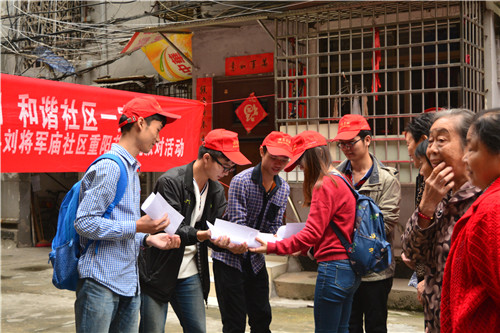 阳光志愿者团队来到刘将军庙社区,协助社区举办重阳节庭院派对。