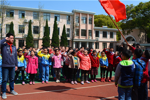 “扬帆远航”标志处,全体人员一早在党员代表王正彪的带领下右手握拳,面对党旗庄严宣誓,作出承诺:“热爱祖国、关心集体,团结同学、助人为乐,艰苦朴素、勤俭节约,刻苦学习、锐意进取!学习雷锋,从我做起……”