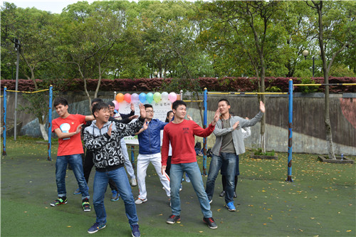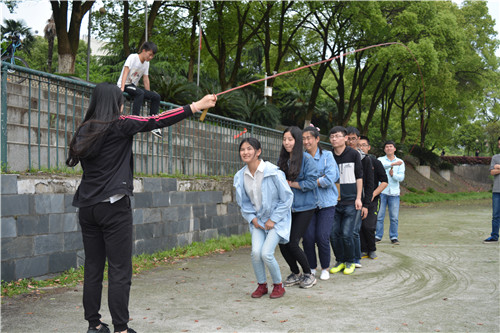 刚下过雨的地面还湿滑,头上却骄阳似火,这些仍然阻挡不住大家游戏的热情。破冰游戏、资源大抢救、垃圾大作战……在“头脑风暴”这一环节,每个小组分为两列进行比拼,规定时间内在跳大绳的同时回答出主持人所说的物品是可回收或不可回收,回答对多的取胜。“跳大绳的同时判断垃圾的分类是脑力与体力的双重比拼,玩的很开心”学生赵建俊感慨道。