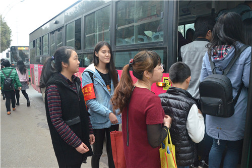 青年志愿者协会走出校园,在双港路公交站开展志愿者活动。