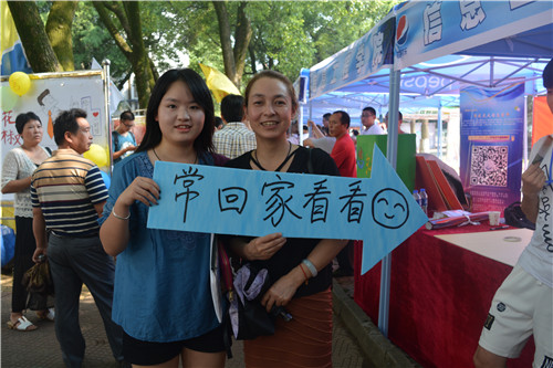 迎新过程中,每一位新生都可以与写有“交大,我来啦”、“记得放假回家”、“我送姑娘上大学”等字样的纸板合影,留下和交大的第一张合影,更是增添了新生开学的火热气氛。