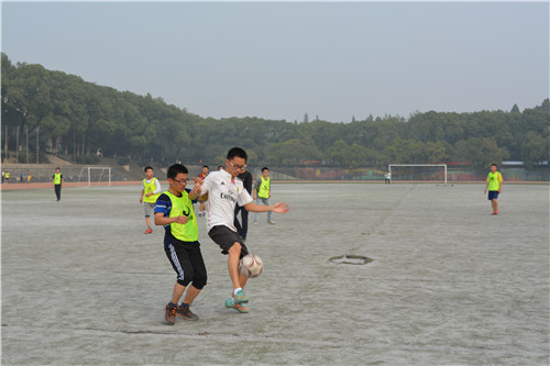 比赛一开始,双方队员就激情澎湃,斗志昂扬,很快就进入状态。比赛进行到第十分钟,信息队突破防守,配合默契,传球稳定,趁机一脚远射,领先一分,将比赛的氛围推进高潮。物联网队也不甘示弱,严防紧守,抓住时机,队员黄志坚在上半场前即将结束的时候,一个侧身回旋,将足球正踢入门,双方比分持平。