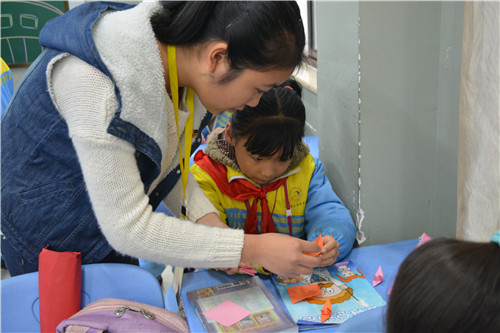 “感动和感恩有什么区别?”在课堂上,孩子们面对志愿者提出的这样一个问题,答案天真多样。“感动是妈妈为我洗衣服,感恩是我为妈妈煮饭”“感动是爸爸在下雨天来接我,感恩是我要好好学习报答爸爸”。“妈妈每天早上都早起为我做饭,爸爸送我上学,我应该感恩父母”孩子们用稚嫩的童声说出心中的“感恩”。志愿者通过这种问答的形式,让孩子们更进一步的认识感恩,学会感恩。上课过程中,志愿者教孩子们用手语表演歌曲《感恩的心》,并赠送给每一个孩子一张明信片,让孩子们写下自己想对父母说的话,亲手把明信片交给父母。在教孩子们制作千纸鹤的环节,孩子们显得激动,边看志愿者怎么折便自己试着做,太快的还着急地问志愿者怎么折。志愿者陈婷说:“一只只千纸鹤让孩子们在提高动手能力的同时,学会用实际行动去感恩他人。”
