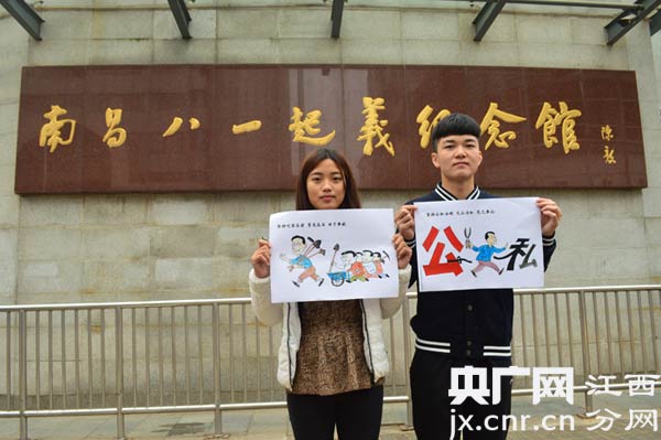 衣着简单朴素的干部、整洁干净的画风、简短浓缩的八条禁令……11月21日,华东交大八位入党积极分子将《中国共产党廉洁自律准则》以漫画的形式进行展现,并与南昌英雄城八一起义纪念塔、八一大桥、八一起义纪念馆、八一大道等多处“八一建筑”合影。