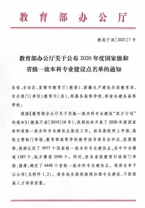 近日,根据《教育部办公厅关于公布2020年国家级和省级一流本科专业建设点名单的通知》,华都娱乐场