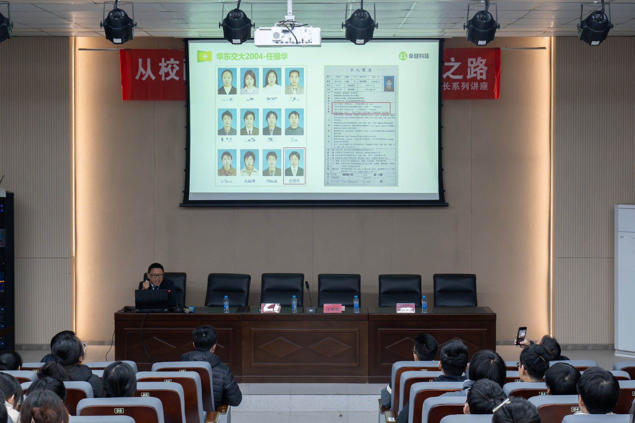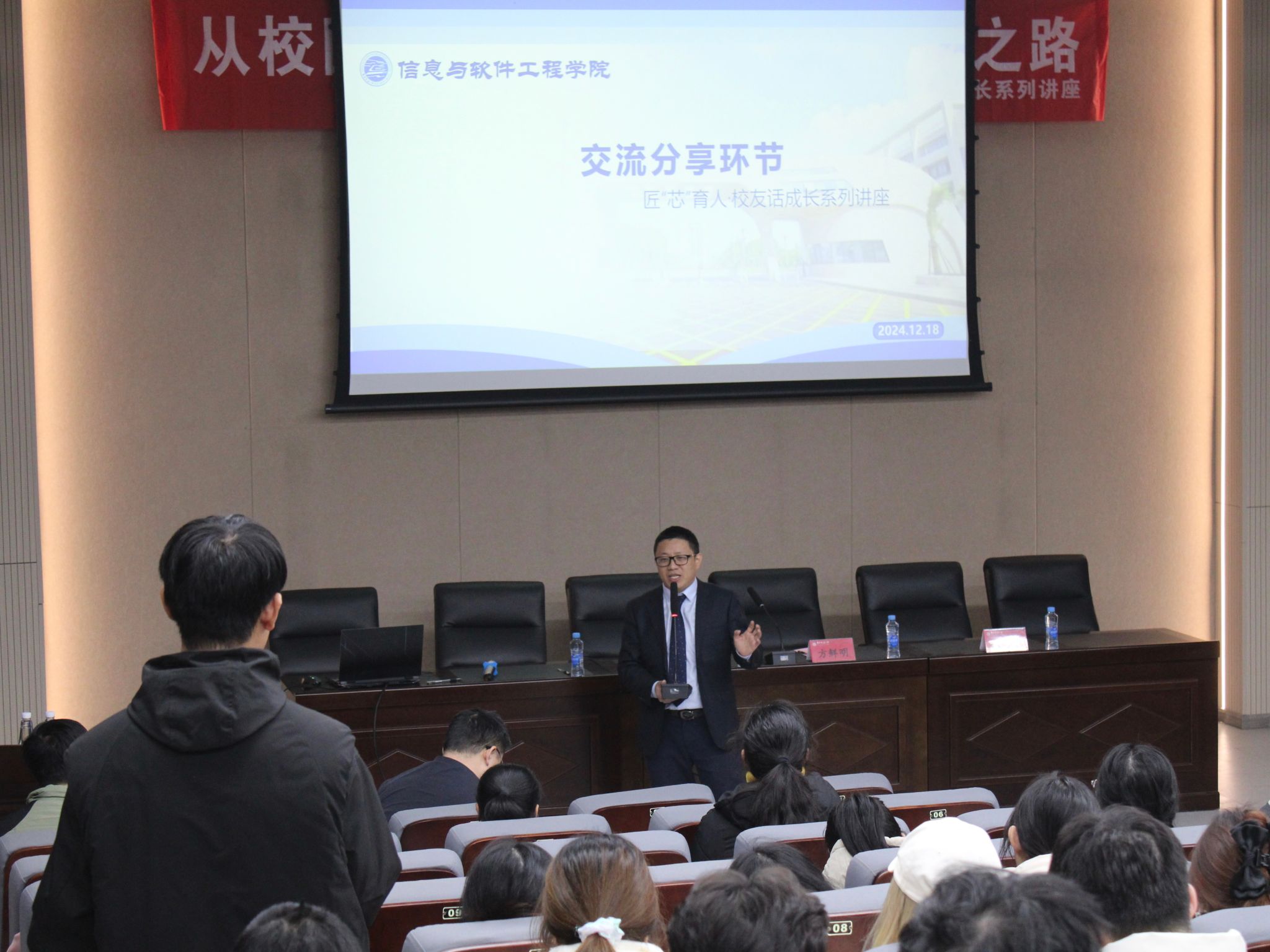 2000级软件工程专业校友,现任卓健科技副总裁、卓健数康总经理。在讲座上,他向同学们分享了个人在学习工作上的成长经历和人生感悟并提出了几点建议:第一是好好学习,打牢专业基础;第二是拓展视野,积极主动布局;第三是发挥优势,凸显个人特色。