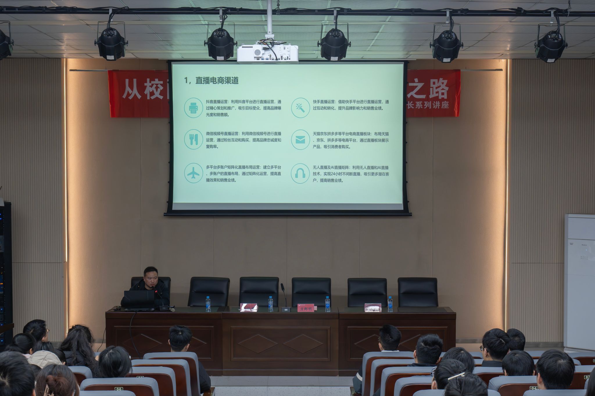 2001级国贸专业校友,现任快客达企业管理有限公司商务总监、新然网络科技有限公司总经理。他结合自己的大学生活、创业经历、电商产业的发展现状和发展前景,分享了如何拥有成功人生的感悟和收获,并鼓励同学们在学好专业知识的同时多参与社会实践,积累社会经验,更为重要的是要有坚持不懈的决心和毅力,才能成为社会需要的复合型人才。