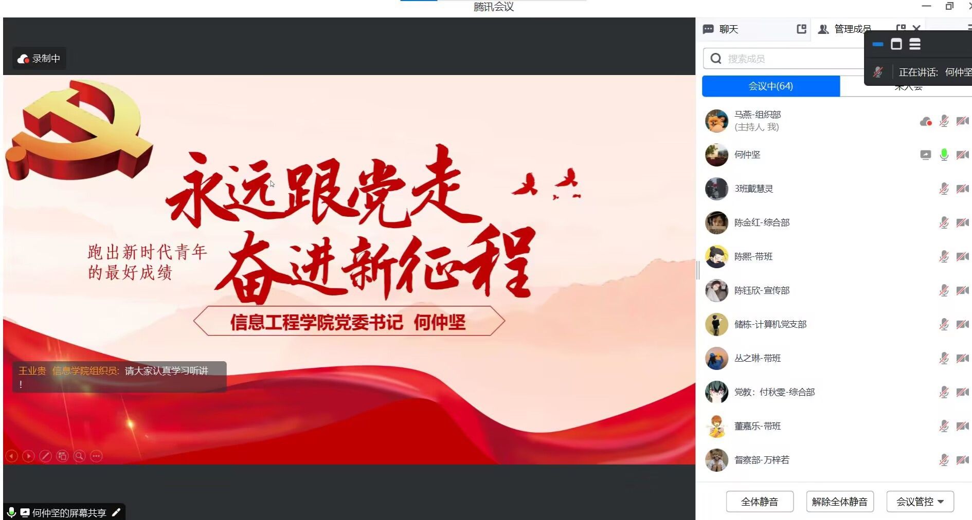 于线上开展党支部工作业务培训会,本次会议由院党委书记何仲坚主讲,党教中心全体成员、2023级带班党员、各支部支委参会。
