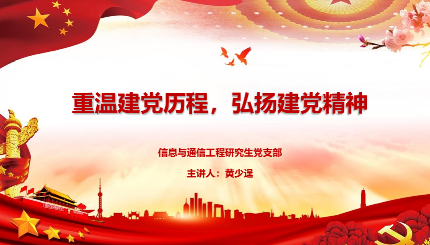 信息与通信工程研究生党支部于线上开展“重温建党历程,弘扬建党精神”主题教育庆祝建党102周年,党支部书记黄少逞主持会议,全体党员到场。