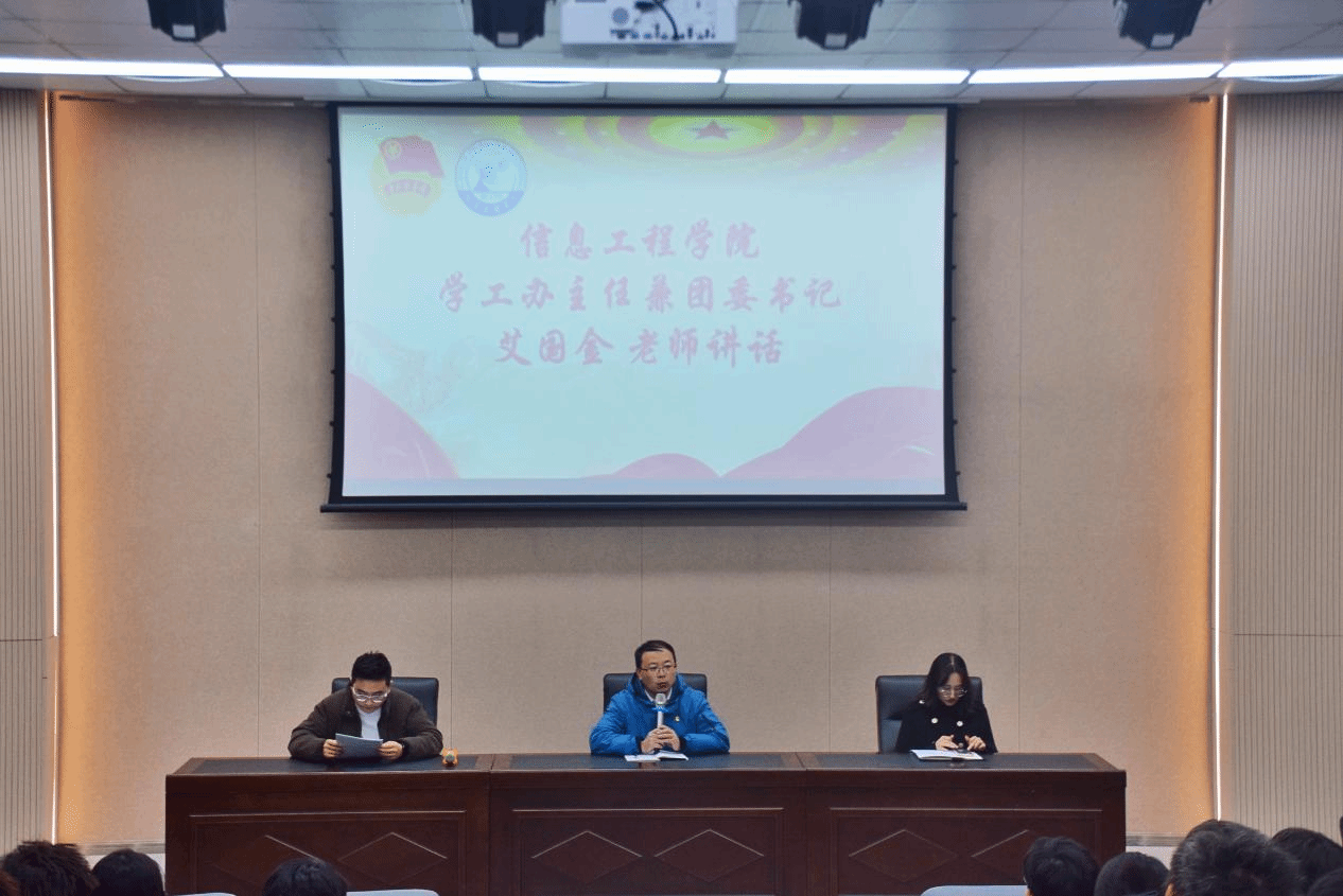 于教5栋108室开展学生团干部培训会开班仪式,院学工办主任兼团委书记艾国金、学工办副主任兼团委副书记李萌萌出席培训会开班仪式。