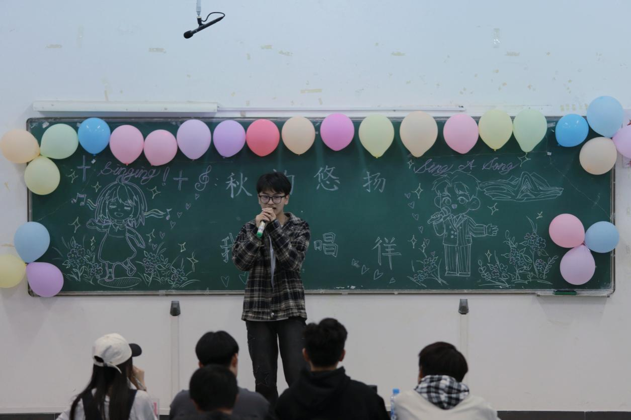于逸夫楼110和111教室举办了“秋韵悠扬,我心唱徉”青歌赛初赛。