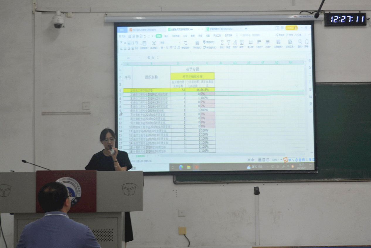 会议伊始,李萌萌介绍了各团支部近几个月来三会的开展情况,并指出三会在录入过程中需注意时间上的问题。她强调团支书手册要进行同步记录,并提醒各位团支书要及时地进行团费收取工作。李萌萌表示,团支书工作重在平时,各位团支书要扛起肩上的担子,更好地服务广大学生。