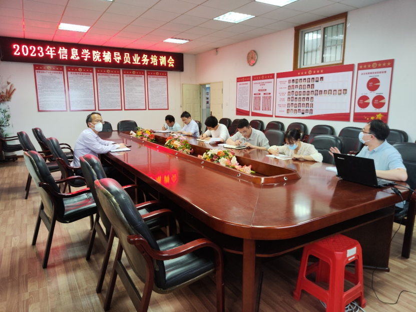 会议室召开,院党委书记何仲坚出席会议,学工办主任、团委书记艾国金主讲,全院辅导员参加培训。