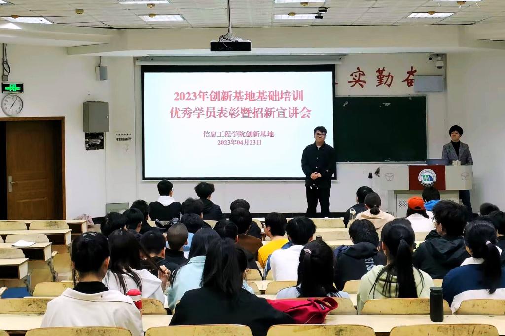 创新基地举办2023年基础培训优秀学员表彰暨招新宣讲会。创新基地主任涂春萍出席,基地各实验团队宣讲团及2022级部分同学参与此次会议。