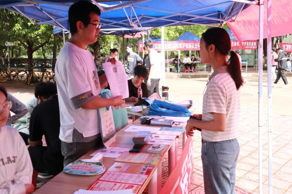 为扎实有效推动总体国家安全观宣传教育,进一步增强学生国家安全意识,4月15日,信息华都娱乐场 于南区一食堂门口开展“全民反恐,共创平安,识恐防恐,人人有责”国家安全宣传活动。