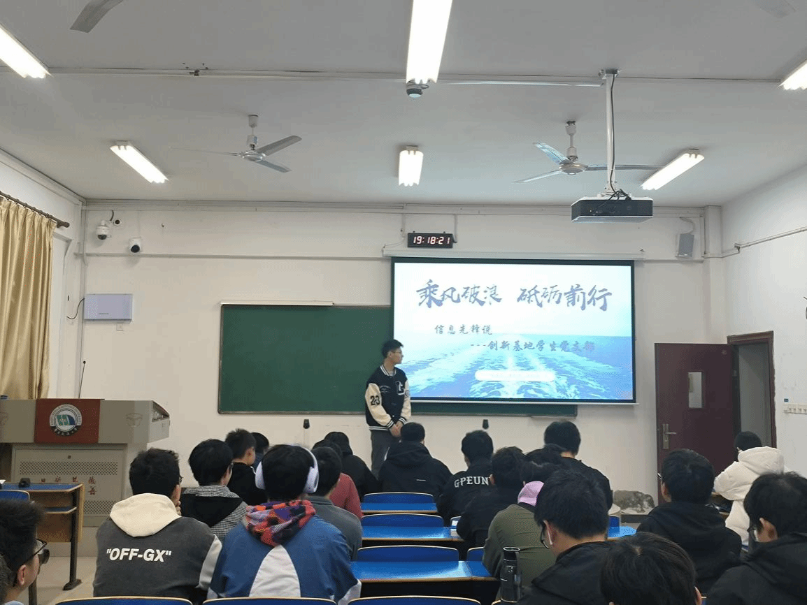 举办“信息先锋说”第十九期分享会。此次活动由创新基地学生党支部组织并承办。支部成员雷利清和邬思雨同志以“乘风破浪,砥砺前行”为主题作分享交流。计算机2023-3班、计算机2023-4班全体同学共同参与。