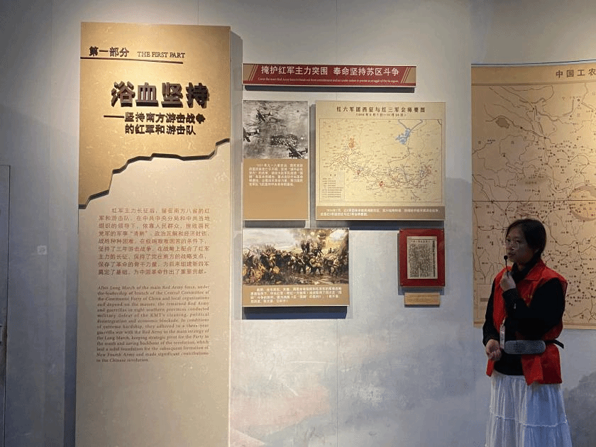 沿着展览路线,同学们看到了许多珍贵的历史文物和图片,它们生动地展示了新四军在战争中的艰苦奋斗和顽强抵抗。在那个战火纷飞的年代,新四军战士们面临着严峻的考验,武器装备都落后于别人,很多甚至只是由农具改装而来,但他们始终坚守信念,为了国家和人民的利益,毫不退缩地投身于战斗中。