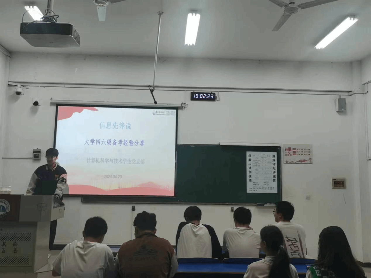 举办“信息先锋说”第三十一期交流分享会,此次会议由计算机科学与技术学生党支部主持。本次分享会以大学英语四六级备考经验分享为主题,由鄯智新同志进行经验分享。计算机科学与技术2022-3班全体同学参会。