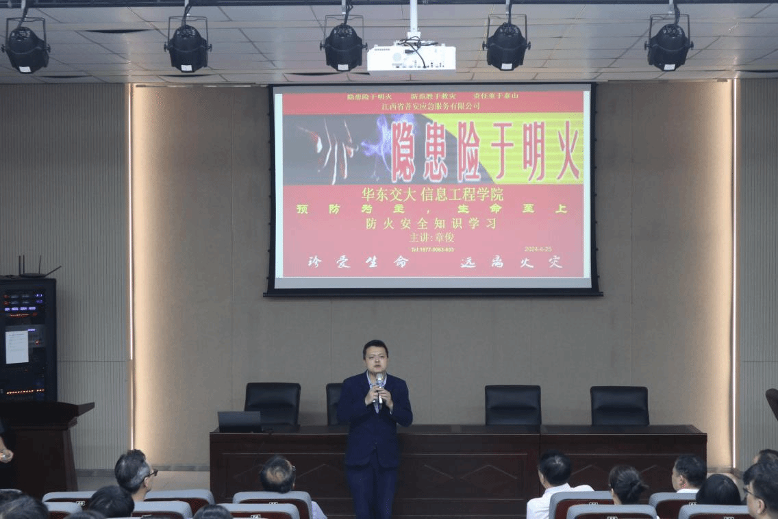 于教五栋108室举行消防讲座。此次讲座由江西省菩安应急服务有限公司教官章俊主讲。