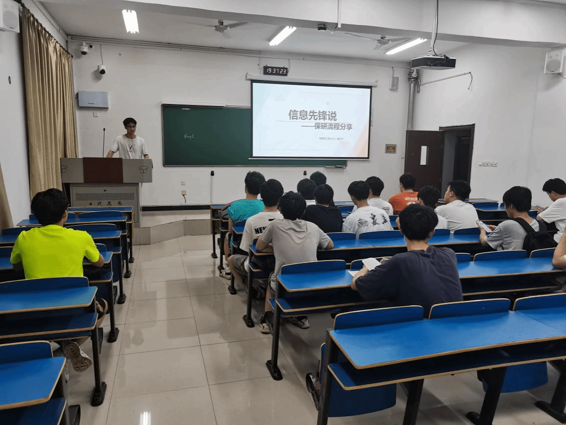 举办“信息先锋说”第三十七期分享会,此次会议由创新基地学生党支部组织承办。支部成员诸虹宇成功推免至南京航空航天大学,由他以保研经验为主题作分享交流。计算机2023-1班、计算机2023-2班全体同学参加会议。