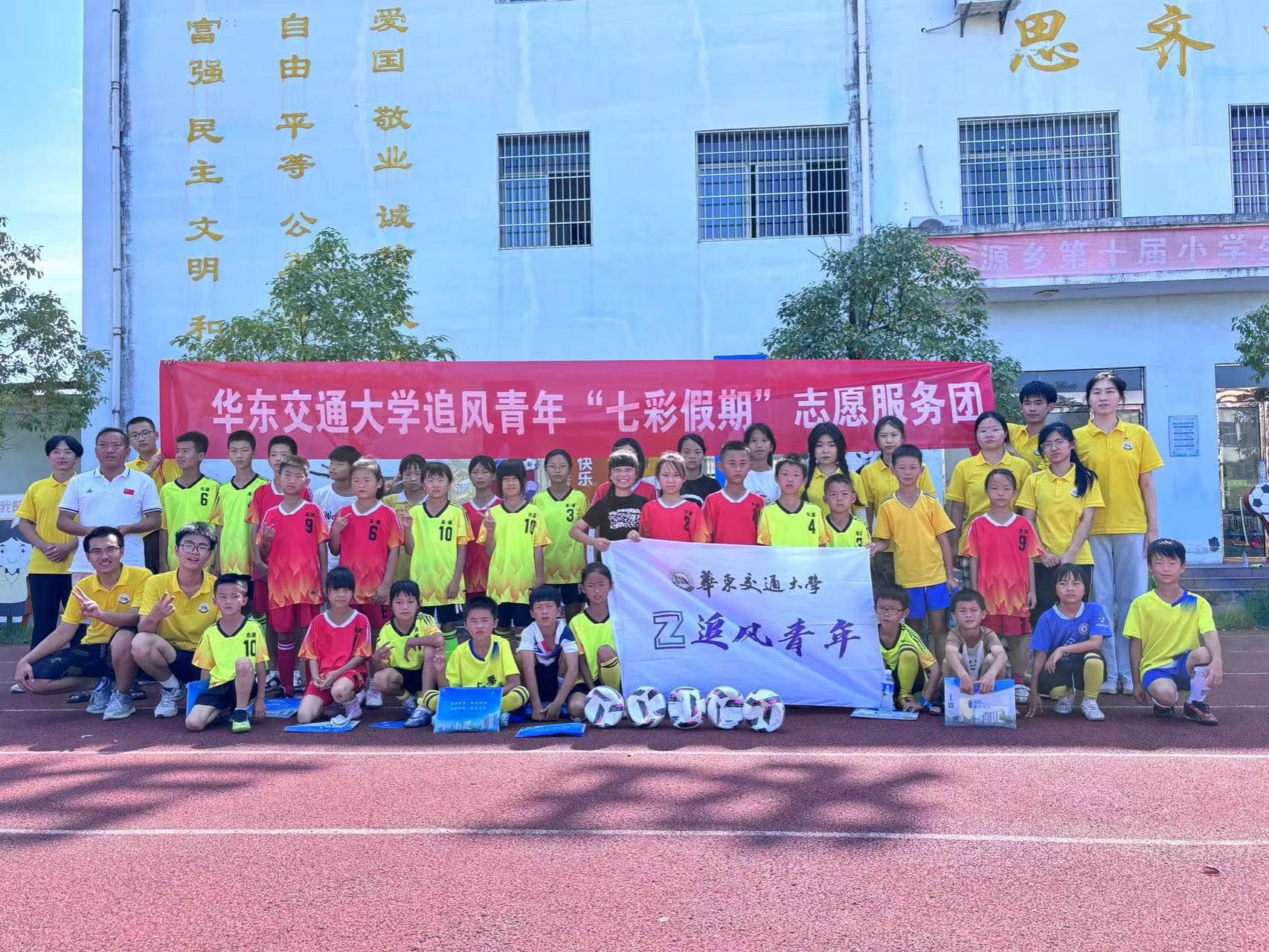 联合组成的“追风青年”暑期实践队,先后前往白竺乡、东源乡、广寒寨乡、排上镇,开展了涵盖红色革命、科学技术、传统文化、安全教育、知识科普、艺术表演、体育健康等多方面的活动。