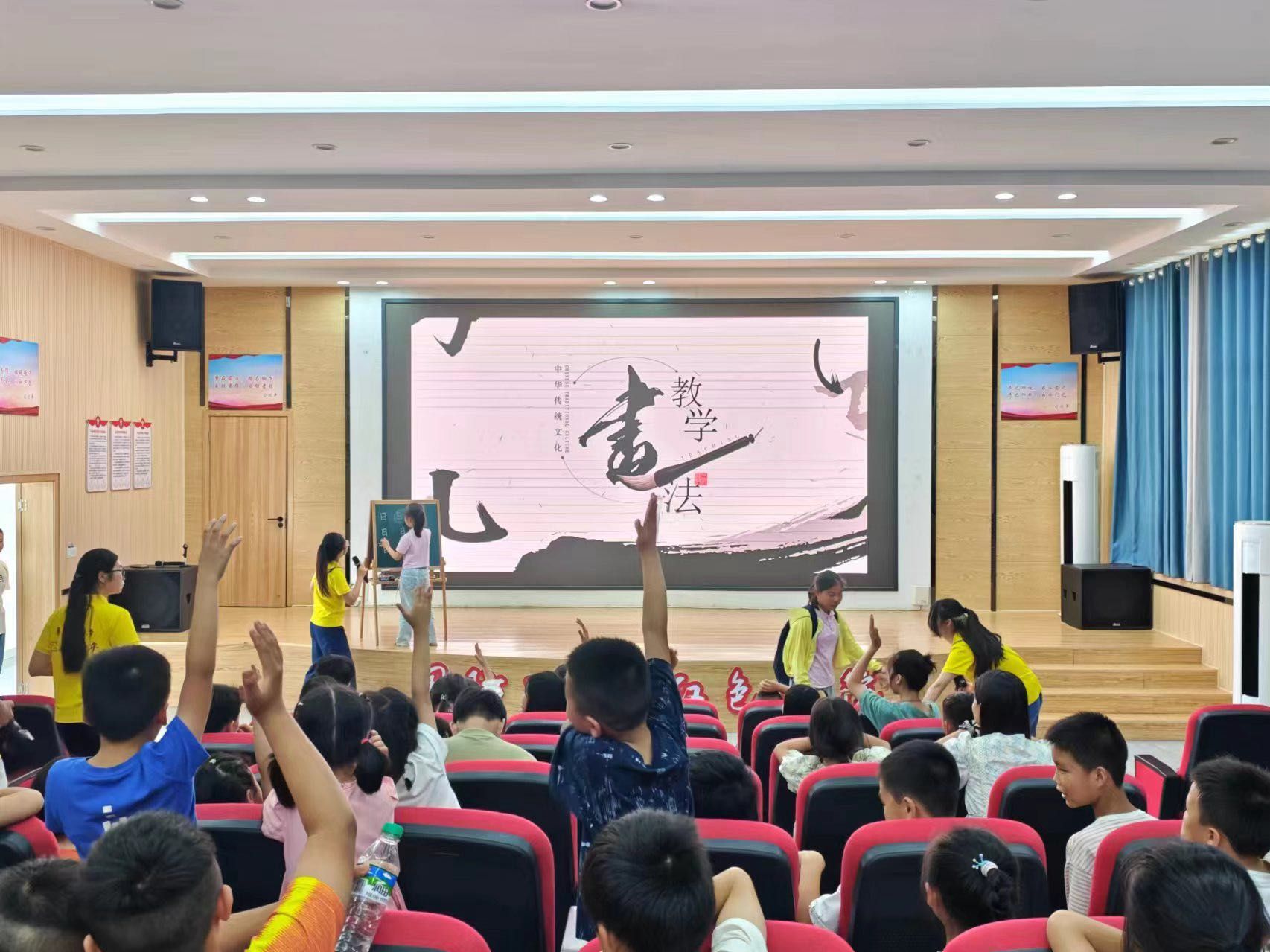 此外,“追风青年”赴东源乡暑期实践队还带来了舞龙表演,点燃了孩子们对传统文化的热爱之情。书法课堂上,实践队不仅讲述了从古至今的优秀书法作品及汉字的演变历程,还引导学生们从硬笔书法的基本笔画拓展到个人创作尝试,培养他们的书法兴趣和技能。