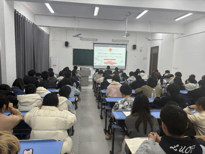 在进贤教学点教学楼313教室开展了党的二十届四中全会精神团支书宣讲团培训会议。本次培训由宣讲团指导老师计晓洁主讲,团委副书记洪亚聪、宣讲团指导老师曾小康及党的二十届四中全会精神团支书宣讲团成员参会。